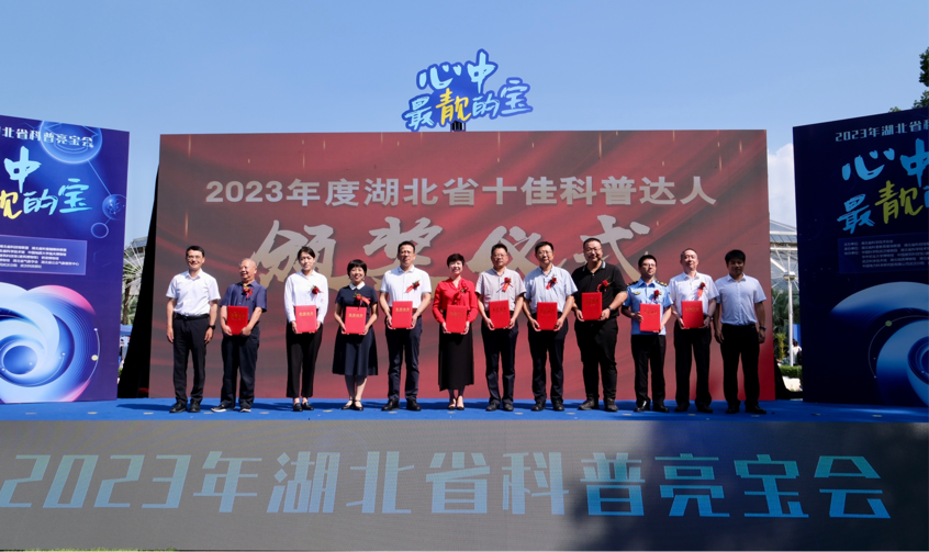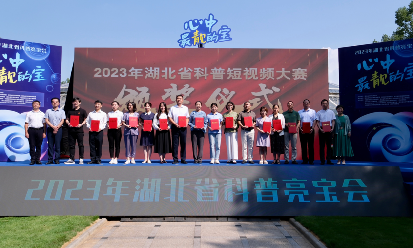 現場,湖北省科普教育基地聯(lián)盟秘書長韓麗與聯(lián)盟成員單位代表共同宣讀倡議書。朱志斌、劉宏濤、鄭華為榮獲2023年湖北省科普短視頻大賽一、二、三等獎(社會組)和2023年湖北省科普短視頻大賽一等獎(青少組)作品的代表頒獎。周德文、關武祥為2023年度湖北省十佳科普達人頒獎。與會領導共同宣布“心中最靚的寶”2023年湖北省科普亮寶會活動啟動。
