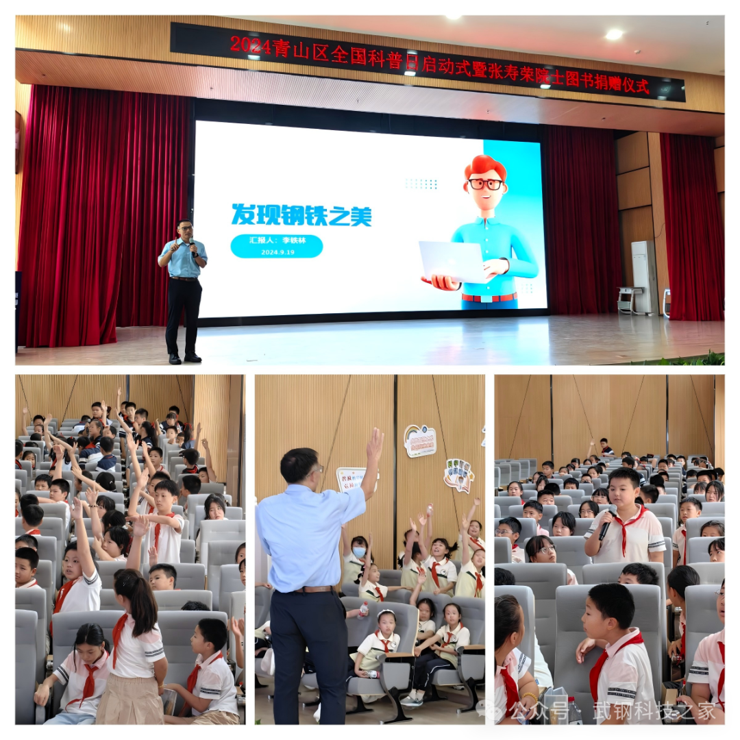 9月19日,武漢鋼鐵有限公司科協(xié)在青山區(qū)濱江未來實驗小學舉辦張壽榮院士圖書捐贈儀式,啟動張壽榮院士圖書展陳館。武鋼科協(xié)秘書長李鐵林以《發(fā)現(xiàn)鋼鐵之美》為題,為青山區(qū)200余名小學生作科普報告,通過視頻動畫、圖表文字、鋼鐵實物展示及現(xiàn)場問答互動等,讓學生們了解“鋼鐵是怎樣煉成的”背后復雜而精妙的工藝,激起學生們的好奇心和求知欲。
