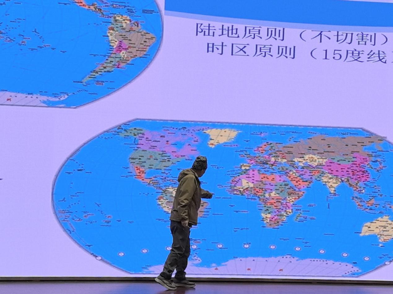 郝曉光揭秘,關(guān)鍵在于找到那條“完美切割線”。在北半球版上,他選擇沿著南緯60度“切開”地球;在南半球版上,切線則定在北緯15度。這兩條線神奇地避開了對大陸板塊的切割,保證了時區(qū)的完整性。