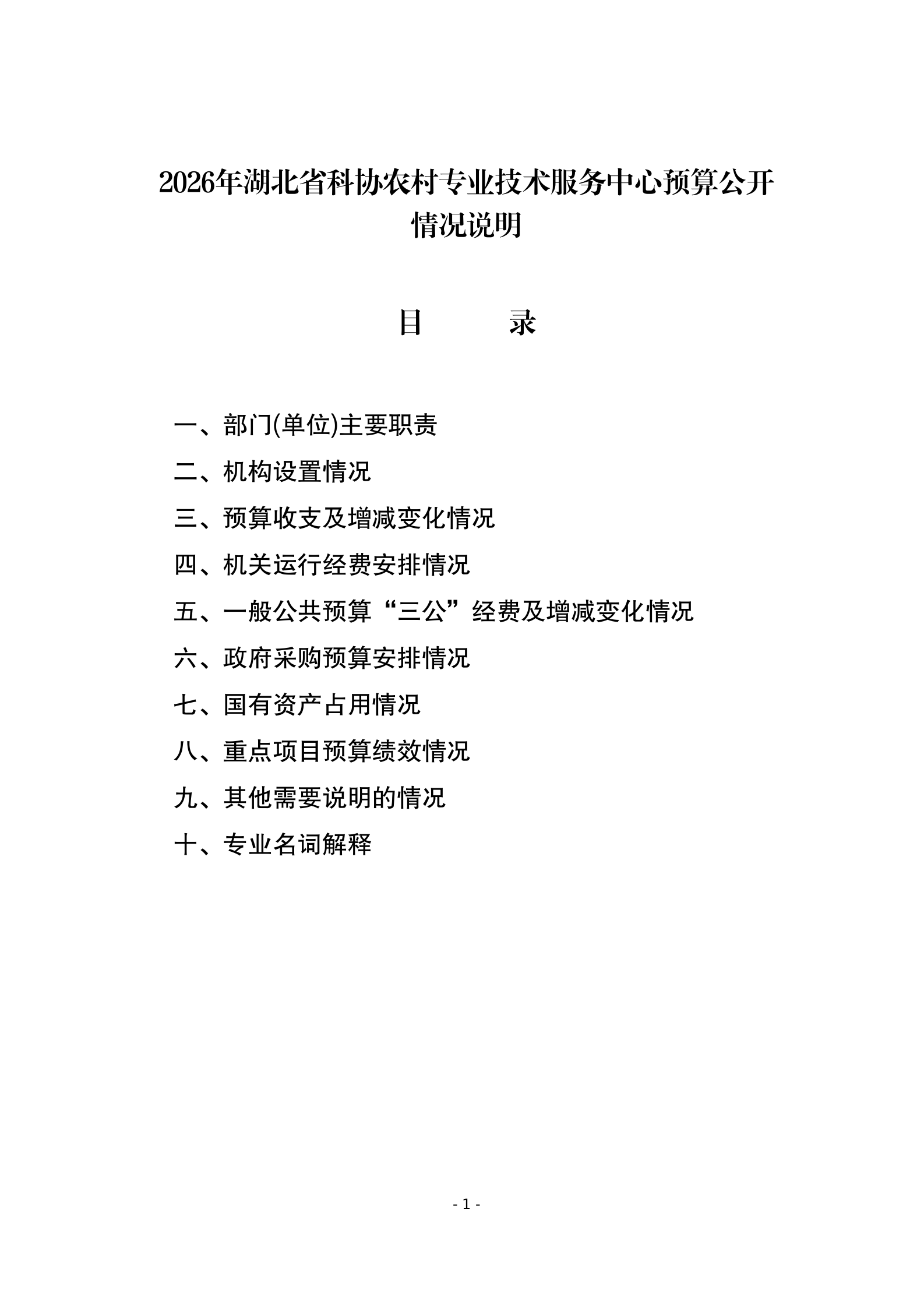 2026年湖北省科協(xié)農(nóng)村專業(yè)技術(shù)服務(wù)中心預(yù)算公開情況說明
